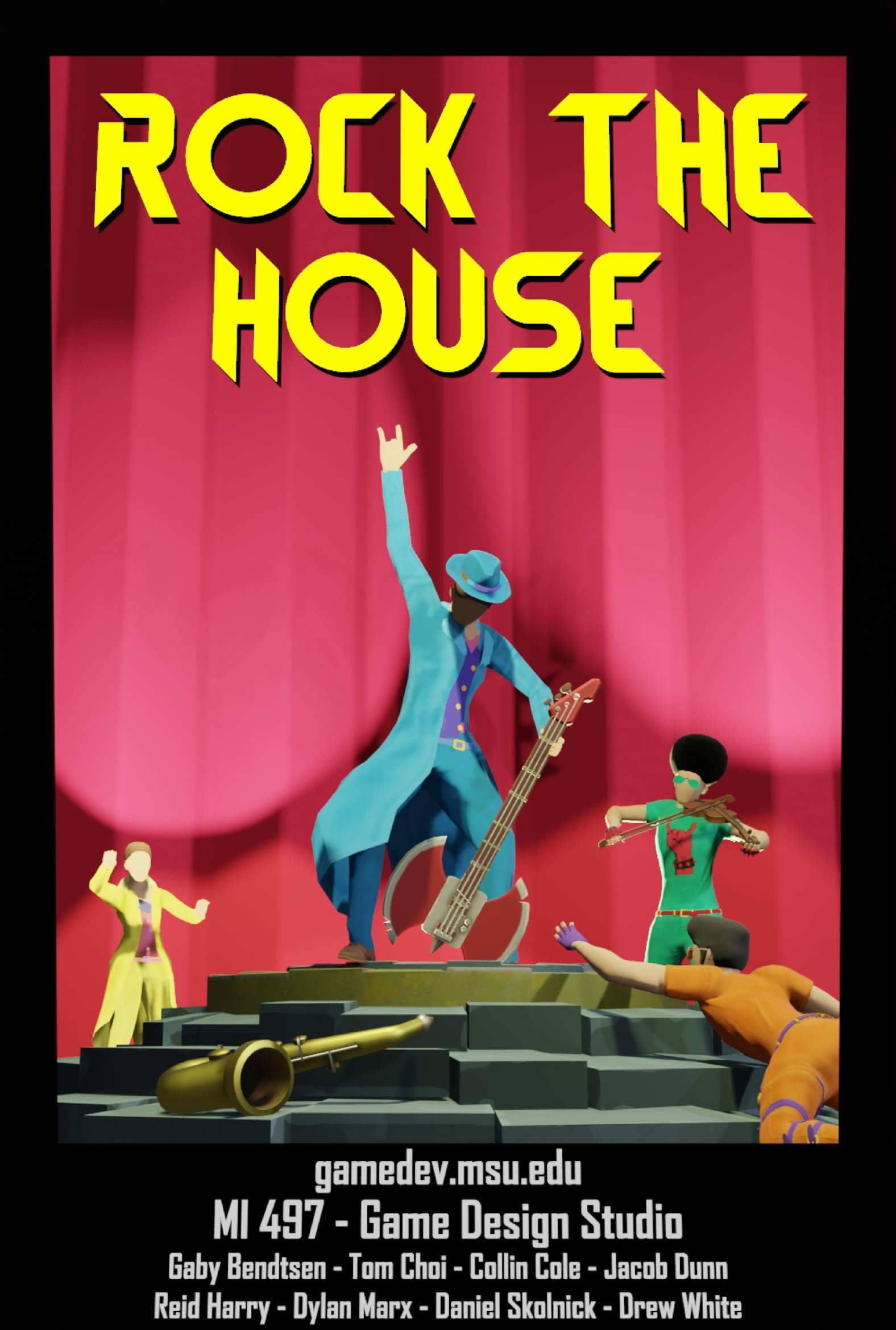 Check out the Rock The House itch.io page here! It was released as part of a charity bundle benefitting Gamer's Outreach and the MSU Game Development club Spartasoft. Grab some friends or family, pick up some controllers, and start rocking those houses!